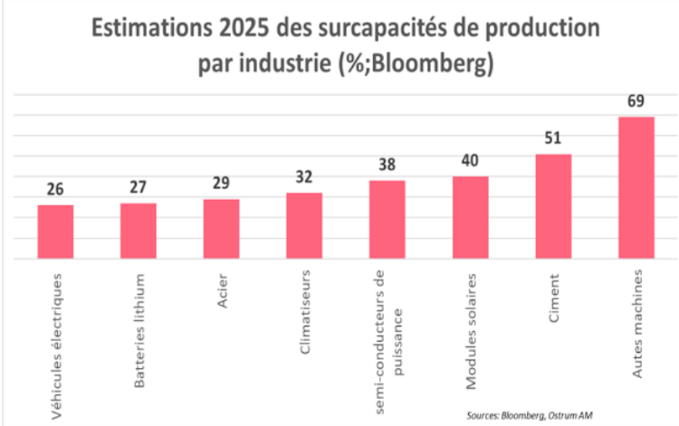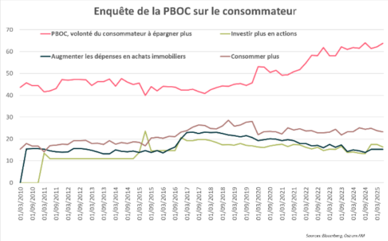 Le secteur immobilier reste en crise, marqué par la baisse des prix dans le neuf et des ventes résidentielles. Faute de visibilité sur le marché du travail et confrontés à la crise immobilière, les ménages préfèrent épargner plutôt que consommer, comme l’a révélé une enquête de la PBOC au deuxième trimestre. Les pressions déflationnistes se sont accentuées dans ce contexte, aggravées par l’escalade tarifaire avec les États-Unis. Il devenait urgent d’agir en ciblant cette fois les surcapacités de production.