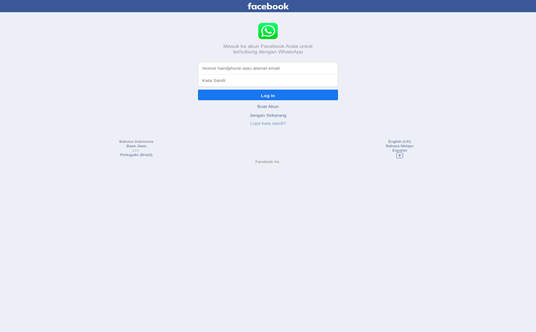 En février, nous avons remarqué que l’URL mail\.whatsapp\.vvipx9\.com/login.phpprésentait une fausse page de connexion WhatsApp en indonésien, demandant des identifiants Facebook afin de se connecter. Le domaine est hébergé sous l’adresse IP 5.189.170.134