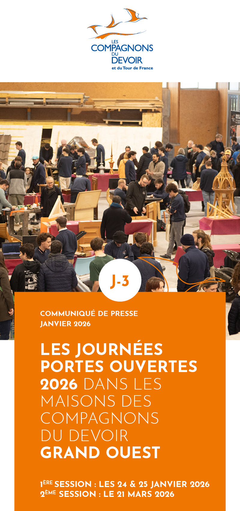 Les Compagnons du Devoir, comme chaque année, ouvrent les portes de leurs Maisons partout en France afin de faire découvrir l’ensemble de leurs formations mais aussi les valeurs qui les animent : fraternité, ouverture, accomplissement et partage.