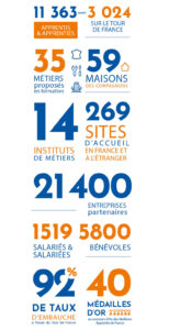 Les journées portes ouvertes constituent une opportunité précieuse d’information et d’échanges, permettant aux futurs apprenants et apprenantes de préciser et d’affirmer leur projet d’orientation et professionnel. Elles et ils peuvent choisir de suivre une formation pour un premier diplôme de métier (CAP, bac professionnel ou BTS). Elles et Ils peuvent aussi choisir de continuer au-delà de ce premier diplôme pour faire le Tour de France et finalement devenir Compagnons du Devoir.