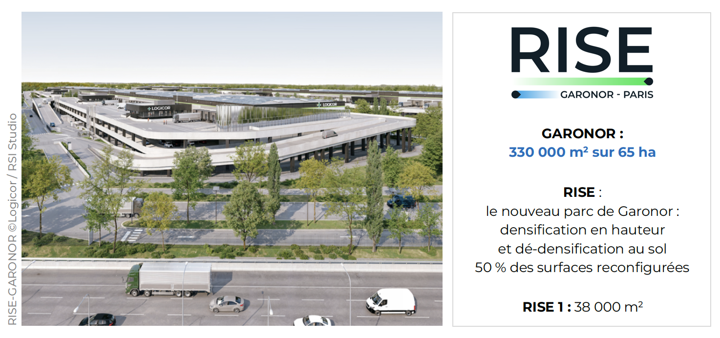 « Depuis près de 60 ans, Garonor est une référence. À l’entrée du premier bassin de consommation européen, ce parc permet de stocker et acheminer des marchandises au cœur de l’Île-de-France, depuis le nord et l’est de l’Europe. Si les fondamentaux de localisation demeurent excellents, la distribution interne du parc ainsi que le bâti, malgré les rénovations, ont vieilli tandis que les besoins logistiques évoluent. Voilà pourquoi, malgré un taux d’occupation d’environ 90 %, nous avons décidé, grâce à la rotation naturelle des locataires, de reconfigurer tout le site en créant RISE. Cet investissement très significatif reflète notre vision d’un immobilier logistique efficient, multiniveau et attentif à son empreinte écologique ainsi qu’au confort de ses usagers. Le premier bâtiment de RISE sera livré dès 2027. » explique Laurent Dubos, Directeur Général de Logicor France.