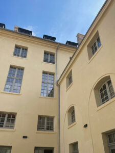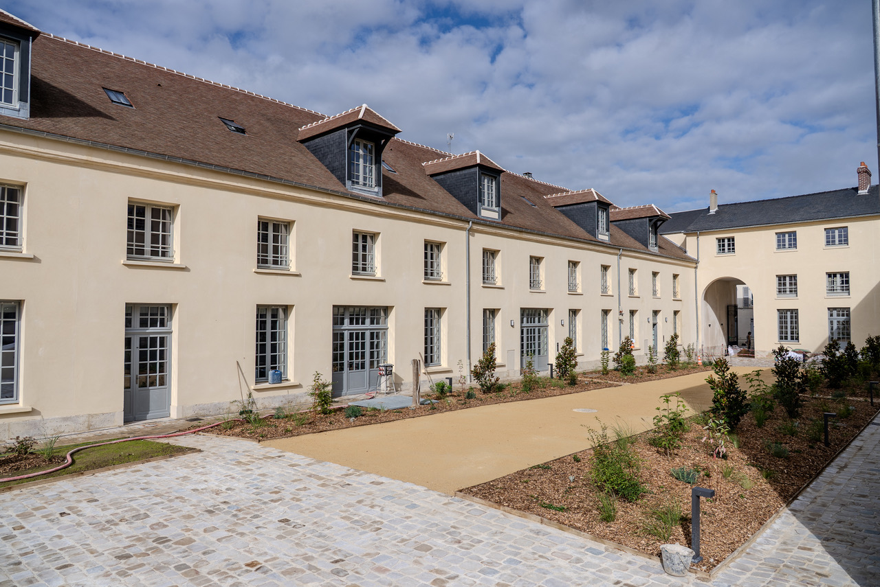 Les espaces extérieurs ont été repensés pour retrouver leur éclat d’origine : cour d’honneur pavée, jardin clos, cours végétalisées sur parking souterrain.